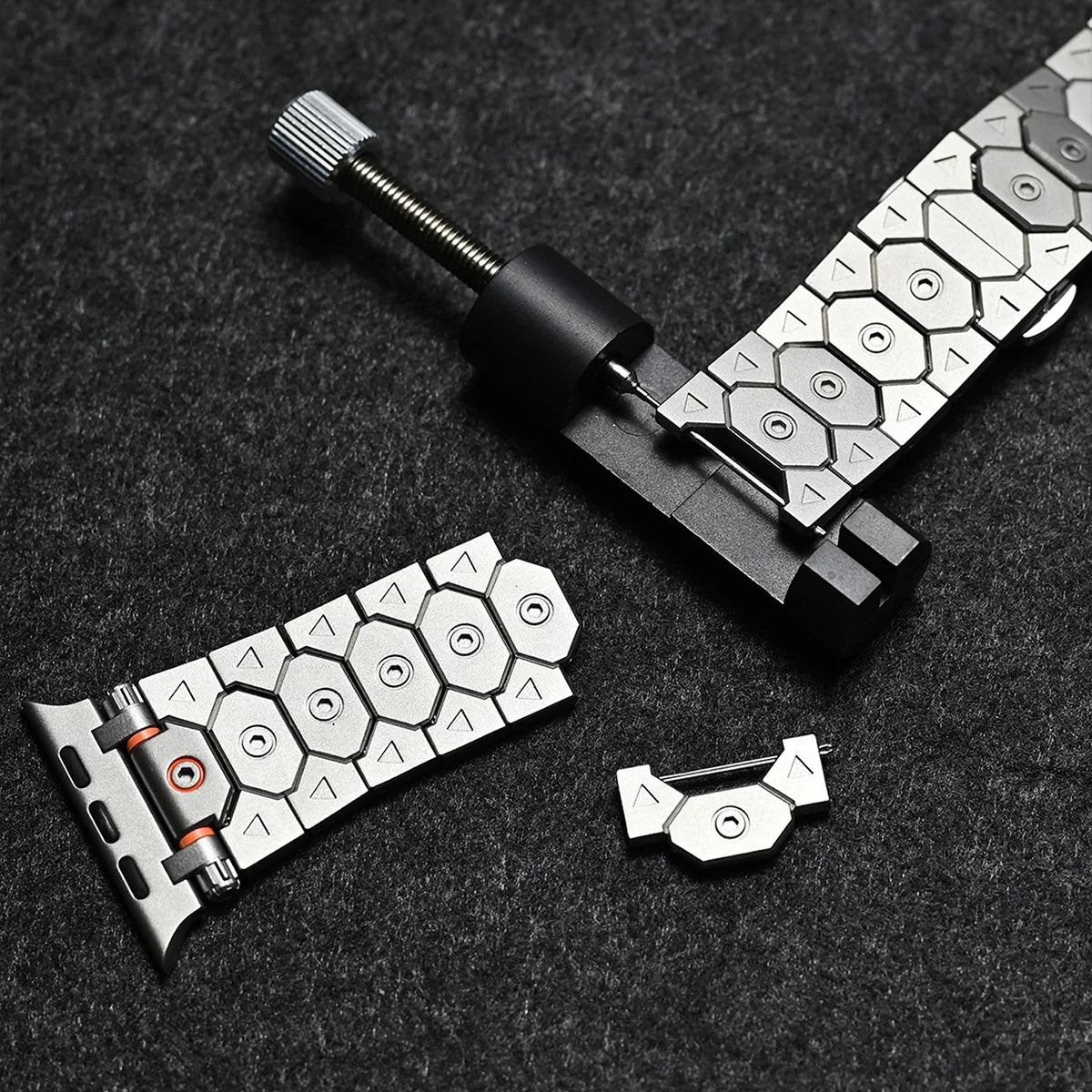 Engineered from high grade stainless steel, this band transforms your Apple Watch into a statement piece. Precision links, bold contrast details, and futuristic design—built to flex power, not just time.
